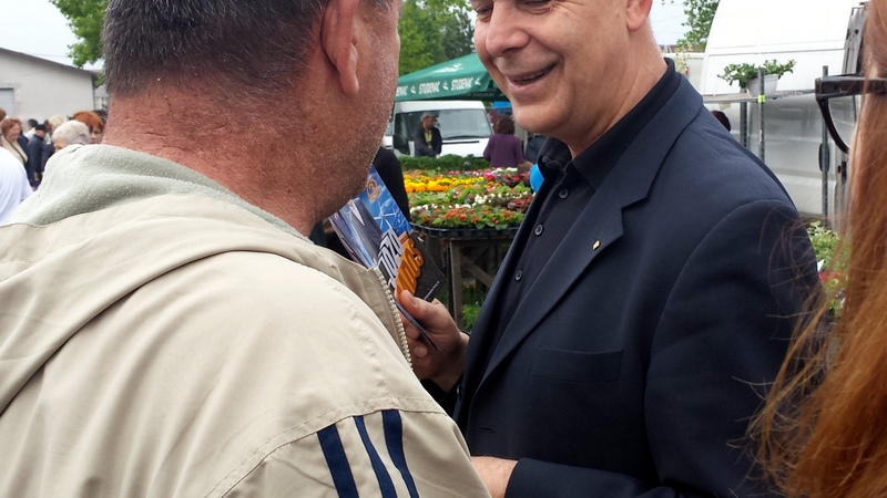 Zagreb, 25. travnja 2014. - HNS-ov kandidat za Europski parlament Jozo Radoš u sklopu kampanje za europske izbore družio se sa stanovnicima Sesveta i Gornje Dubrave.